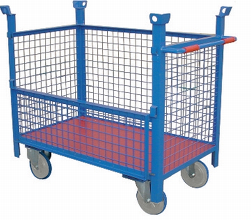 Container with hinged midlateral for loads not exceeding 600 kg, with light 50x50 and a useful height of 750mm, fixed and swivel wheels with brake that provide great mobility of the container. Reinforced mesh side, being very useful for storage and transportation of goods in which you want your content to be visible. Container for storage and transport of goods. Great resistance and strong corners of the container provides the possibility of a very stable stacking between containers and safely. Lugs and engage stacking crane.