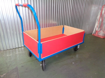 Trolley with wood sides.