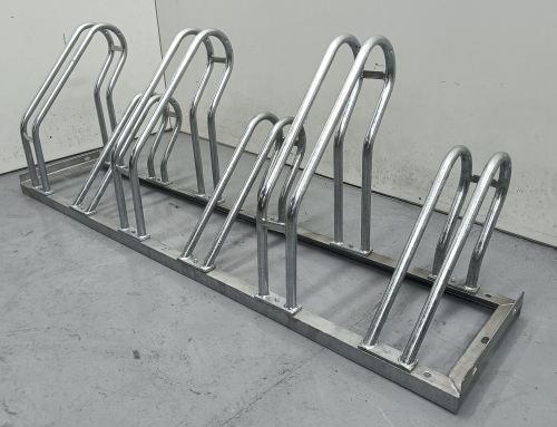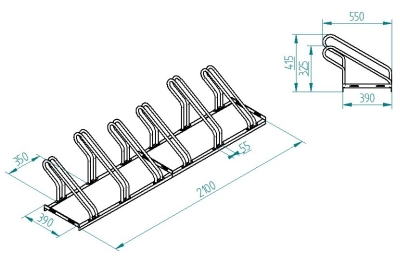 Space-saving bicycle parking thanks to alternating low and high hoop positions, distance between hoops 350mm.
