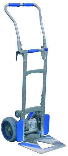 Electric foldable stairclimber perfect for transporting and lifting loads up to 140 Kg stairs without any problem or effort. 1 person can easily operate and carry the load without any problems. Raise loads with smooth movements due to puncture proof wheels Ø 260. Elevation is electrically controlled by a switch and having various speeds. The battery is included and change is quick and easy. Made of aluminum. CE Marked.