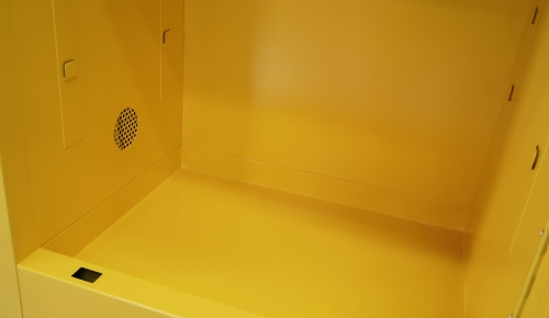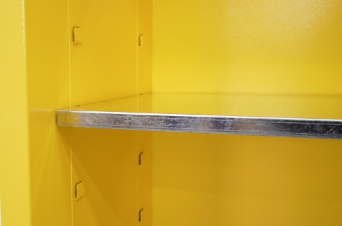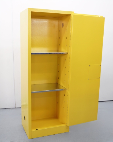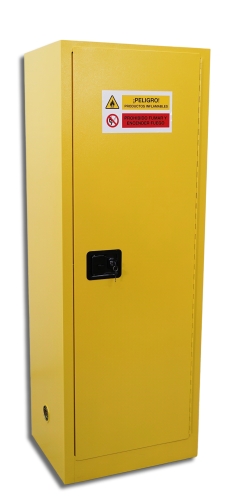 Working cover cabinet flammable products external dimension (H 1650 ) x ( W 585 ) x (D 460 ), perfect for storing flammable liquids. 3-point lock with two keys. Adjustable leveling legs for balance on uneven surfaces. Maximum load capacity of 60 kg per shelf.Adjustable system incorporated on the sides of the cabinet shelves for added versatility.Ground incorporated for static. Finish with powder unleaded interior and exterior, chemically resistant. With forced ventilation for fire-1 high and 1 low (diagonally opposite). Fully welded construction.