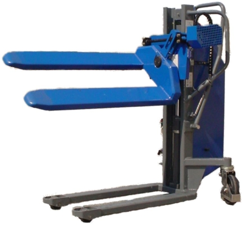 Apilador elevación eléctrica y rotación manual . Con una capacidad de carga de 800 Kg. Capacidad de carga 600 Kg a 20% de inclinación, Capacidad de carga 400Kg a 40% de inclinación. Altura de elevación 900mm. Marcado CE.