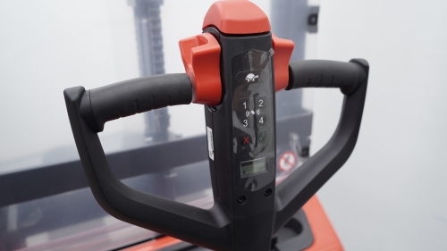 Apilador de elevación y traslación eléctrica para manipulación de cargas de 1.200 Kg en espacios medianos / pequeños. Batería de 24 V. con una autonomía de 3 Horas en continuo. Timón de dirección con muelle de retorno. Cargador incorporado con indicador del estado de las baterías. Rejilla de seguridad. Claxon. Seta de emergencia. Marcado CE.