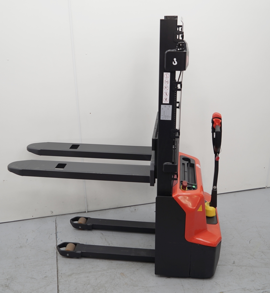 Apilador de elevación y traslación eléctrica para manipulación de cargas de 1.200 Kg en espacios medianos / pequeños. Batería de 24 V. con una autonomía de 3 Horas en continuo. Timón de dirección con muelle de retorno. Cargador incorporado con indicador del estado de las baterías. Rejilla de seguridad. Claxon. Seta de emergencia. Marcado CE.