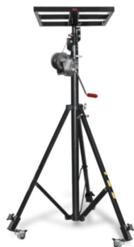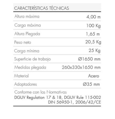Elevador manual para conductos de aire acondicionado, muebles u otros productos. Se acciona mediante manivela y alcanza una altura max. de 4.000mm. Tiene una capacidad de 100 kg. de carga y es plegable para facilitar su transporte y almacenaje.