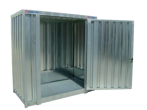 Caseta galvanizada de 2.100 x 1.140 x 2.300, perfecta para almacenaje de productos químicos. Caseta fácil de limpiar. Paredes galvanizadas trapezoidales que proporcionan una estructura muy robusta. Cubeta de retención de 275 litros, 1 puerta con cerradura de 1.300mm y rejilla de ventilación. Se suministra sin estanterías.