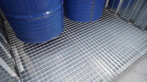 Caseta de seguridad, perfecta para el uso como armario de seguridad para el almacenaje de productos químicos. Caseta fácil de limpiar. Paredes galvanizadas trapezoidales que proporcionan una estructura muy robusta. Puerta con cerradura. Apertura del techo fácil y sin esfuerzo gracias a sus 2 pistones de gas situados en sus dos laterales. Cubeta de retención de 215 litros. Posibilidad de almacenar hasta 4 bidones de 200 litros. Se suministra sin baldas.