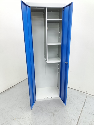 Armario de limpieza con escobero y estanterias. Dos puertas abatibles con cerradura. SE SUMINISTRA DESMONTADO