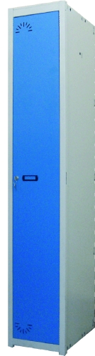 Taquilla INICIAL de 1 puerta, fabricada en chapa de 0,6mm de espesor, pudiendo enlazar tantos módulos como se desee. Taquilla resistente y muy estable. El acabado se realiza con pintura epoxi poliéster gofrado, cumpliendo así las normativas de la CEE. Posee rejillas de ventilación y cerradura con dos llaves. El color estándar es cuerpo gris con puerta azul. Se suministrarán desmontadas.
