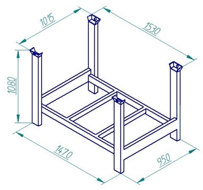 Portapuntal con medidas 1.470 x 950 x 1.080, fabricado en acero muy resistente capaz de soportar cargas de hasta 1.000kg. Apilable en altura.