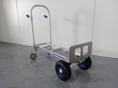 Carretilla y carro todo en uno perfecto para transportar cargas como una carretilla tradicional o como una plataforma con un simple accionamiento se convierte. Capacidad de carga hasta 300 Kg. Ruedas neumáticas con cojinetes a bolas.