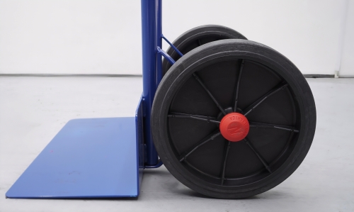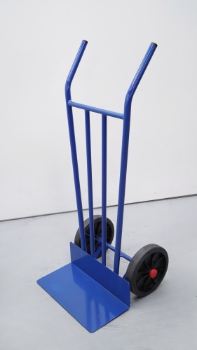 Carro para almacén con dos barras centrales, perfecto para el transporte de cargas, fabricado en tubo de acero. Largo de la pala de 220. Ruedas de goma maciza Ø 250 x 40 ref. 30-645. Capacidad de carga 150Kg.