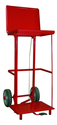 Carro de desperdicios para bolsas de basura con tapa basculante mediante pedal. Fabricada en acero muy resistente. Capacidad de 100 litros. Ruedas de goma gris para un transporte cómodo y de fácil manejo. Opcional con tapa de plástico