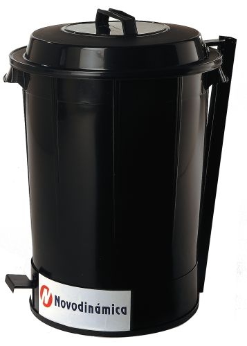 Papelera o barreño industrial negro con tapa basculante mediante pedal. Capacidad de 70 litros.