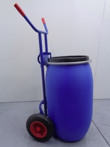 Carro para subir bidones de 200 litros de chapa y plastico con dos ruedasa cubetas de retención o palets.