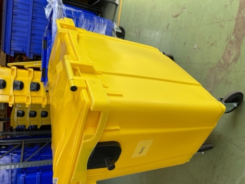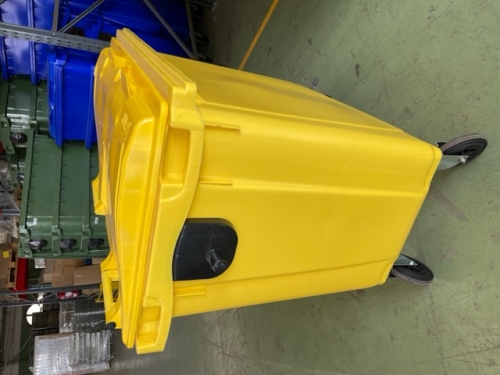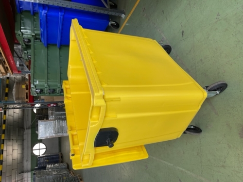 Contenedor fabricado en polietileno de alta densidad, resistente a los rayos ultraviolteta e infrarrojos, al paso del tiempo y a altas y bajas temperaturas. Fácilmente lavable con agua. Ruedas de caucho macizas. Tapa con borde para un levantamiento continuo sobre toda la parte frontal. 6 asas laterales y 2 tomas de agarre. Opción de pedal de apertura de tapa