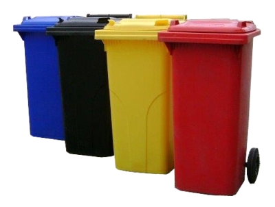 Contenedor de color rojo, de polietileno de alta densidad resistente a los rayos ultravioletas e infrarrojos, a altas y bajas temperaturas. Ruedas estampadas de caucho macizo. Capacidad de 120 litros. Asas posteriores para permitir y facilitar su movimiento. Tapa con bisagras sobre el borde lateral de las asas y dotado de dos tomas para su levantamiento. Fácilmente lavable con agua. Opción de Pedal de apertura de tapa.