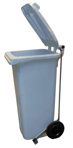 Contenedor en polietileno de alta densidad resistente a los rayos ultravioletas e infrarrojos, a altas y bajas temperaturas. Ruedas estampadas de caucho macizo. Capacidad de 120 litros. Asas posteriores para permitir y facilitar su movimiento. Tapa con bisagras sobre el borde lateral de las asas y dotado de dos tomas para su levantamiento. Fácilmente lavable con agua. Con Pedal de apertura de tapa.