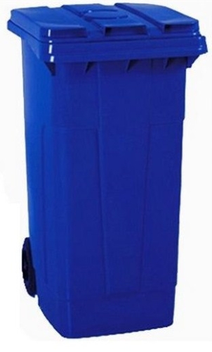 Contenedor a color azul, de polietileno de alta densidad resistente a los rayos ultravioletas e infrarrojos, a altas y bajas temperaturas. Ruedas estampadas de caucho macizo. Capacidad de 240 litros. Asas posteriores para permitir y facilitar su movimiento. Tapa con bisagras sobre el borde lateral de las asas y dotado de dos tomas para su levantamiento. Fácilmente lavable con agua. Opción de pedal de apertura de tapa.