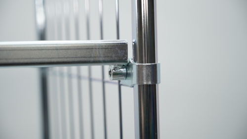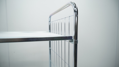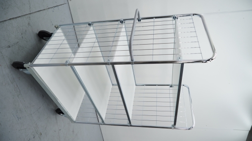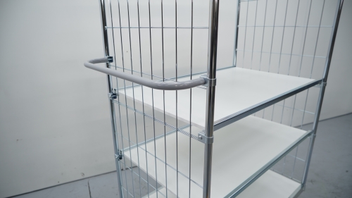 Estantería rodante de 4 alturas abierta por dos lados, construida en tubo y perfil de acero cincado. Tableros de fibra de madera plastificada regulable en altura, 2 ruedas fijas y 2 giratorias de goma. Distancia entre baldas regulables. Se incluyen tres baldas de 1.000 x 600 mm.Asa 170mm.