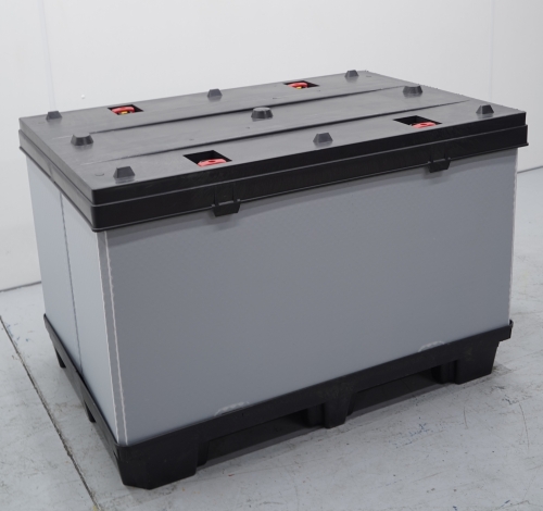 Contenedor de plástico 100% reciclado, plegable de 1200mm. x 800mm. con una capacidad de 400 kg.