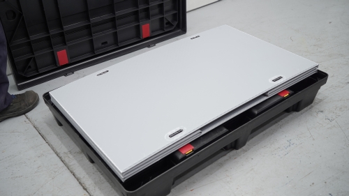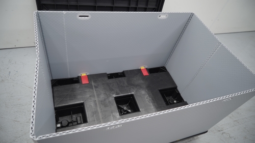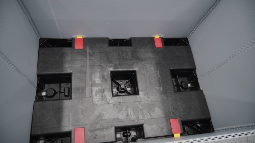 Palet y tapa encajables. De fácil manipulación y ensamblaje. Sin refuerzos metálicos. capacidad de apilado 1.200 kg.