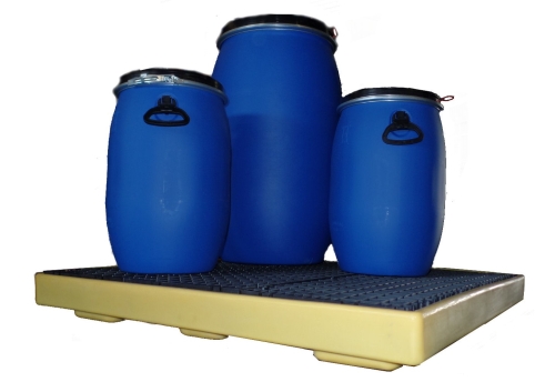 Cubeta de polietileno perfecto para el almacenaje de 4 bidones. Fabricado en polietileno muy resistente, con una capacidad de carga de hasta 1.400 Kg. Dimensiones de 1.257 x 1.257 x 150. Capacidad 140 litros.
