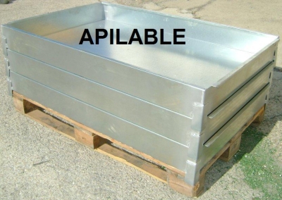 Cubeta en acero galvanizado para palet de 1.240 x 800 x 125 con capacidad de 125 litros, perfecto para el almacenamiento fácil y seguro de bidones o latas de productos químicos y aceites. Fabricación a medida, consúltenos.
