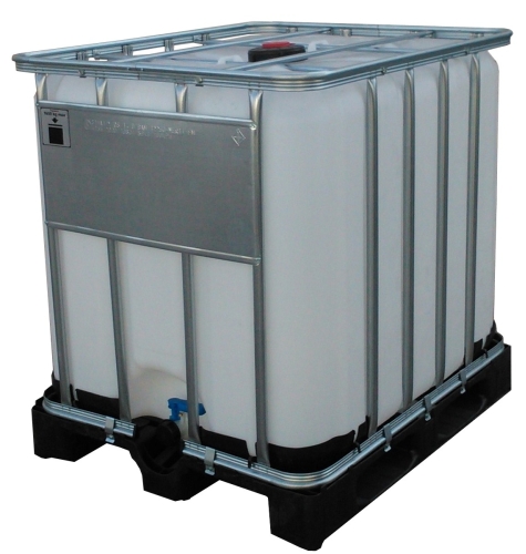 Depósito o contenedor de 1.000 litros fabricado en polietileno de alta densidad y alto peso molecular (PEAD-APM), con estabilizante UV. Jaula de perfil cuadrado de acero galvanizado construida por electrosoldadura automática. Válvula de 2" fabricada en polietileno de alta densidad (PEAD) por inyección con tapón autoprecintable y provista de codo y grifo de vaciado. Tapa roscada de 150mm. de diámetro precintable. Palet de plástico de 4 entradas apilable y encajable. Apilable hasta 3 alturas. Aconsejamos no transportar productos de densidad superior a 1,5Kg/dm3. Homologado para sustancias peligrosas.