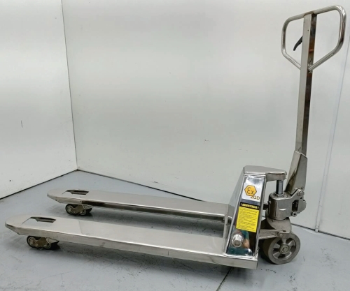 Traspaleta ATEX con elevación manual. Fabricación a medida consúltenos.