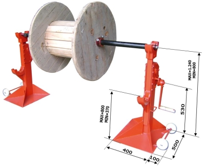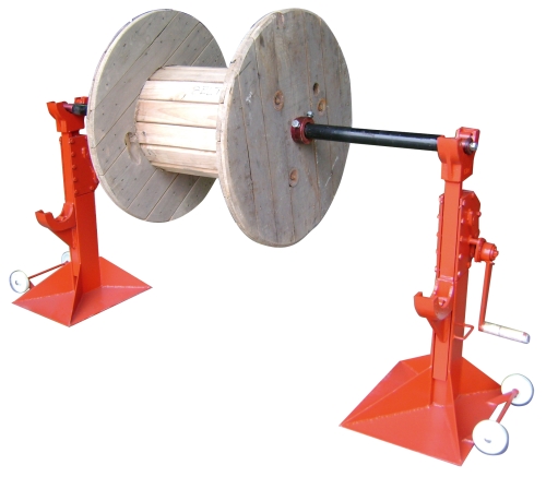 Gato porta-bobinas con cabeza de rodillos, freno de seguridad. Diámetro máximo de la bobina 2.400 mm, capacidad de carga 5.000 Kg. Peso 54 Kg/Ud. No incluye barra ref. 12093