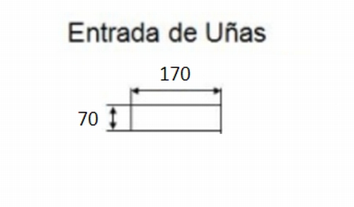 Fácil manejo y seguro puesto que posee un sistema de anclaje por medio de una maneta de sujeción para asegurar un buen amarre a la uña. Medidas L300 x A180 x H80, para uña de 175 x 70. Medidas especiales consultar.