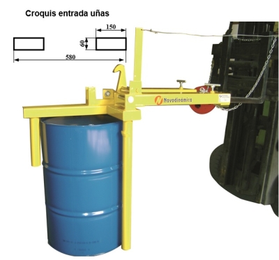 Volteador de bidones para carretilla siendo muy útil para realizar tareas como manipulación, transporte y volteo de bidones de 220 litros, siempre que no supere de 400 Kg. Fácil manejo y seguro. El giro del bidón es de 90 grados. Estructura muy robusta fabricada en Acero perfilado, y consistente en bastidor básico para la inserción de las uñas de la carretilla. Maneta y cadena de sujeción para asegurar un buen amarre a las uñas de la carretilla. Marcado CE. Fabricación a medida, consúltenos. SE SUMINISTRA DESMONTADO