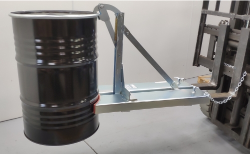 Pinzas para el transporte sujeción o elevación de 1 bidón de 50 a 220 Litros y que no supere los 500 Kg. Manejo sencillo y seguro ya que posee una uña especial de sujeción. Posee una pinza de sujeción regulable en altura para poder adaptarse a los distintos tamaños de los bidones. Estructura muy robusta fabricada en acero perfilado para el uso de carretillas. Protección de goma para evitar daño en los bidones Marcado CE.