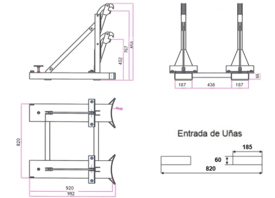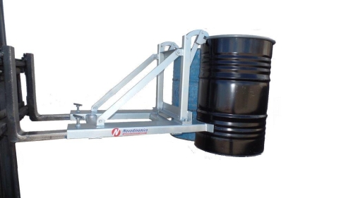 Pinzas para el transporte, sujeción o elevación de 2 bidones de 50 a 220 Litros y que no superen los 500 Kg cada uno. Manejo sencillo y seguro ya que posee un mecanismo especial de sujeción. Posee una pinza de sujeción regulable para la adaptación a los distintos tamaños de bidones. Estructura muy robusta fabricada en acero perfilado para el uso de carretillas. Protección de goma para evitar daño en los bidones. Marcado CE.