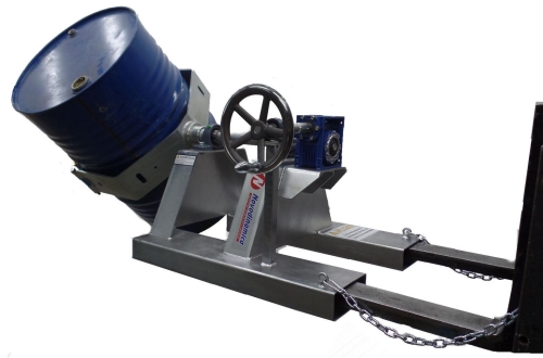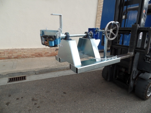 Volteador de bidones lateral para carretilla, siendo muy útil para realizar tareas como manipulación, transporte y vaciado de bidones metálicos de 220 litros, siempre que no superen 360 Kg. Fácil manejo y seguro puesto que posee un sistema de accionamiento manual mediante manivela o cadena. El bidón puede girar hasta 360 grados. Estructura muy robusta fabricada en Acero perfilado, y consistente en bastidor básico para la inserción de las uñas de la carretilla. Maneta de sujeción para asegurar un buen amarre a las uñas de la carretilla. Sistema de sujeción mediante pinza con amarre de nylon. Marcado CE. Fabricación a medida, consúltenos.