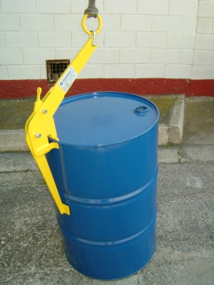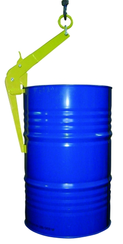 Pinza para la elevación vertical de bidones metálicos rebordeados de 200 litros y que no superen de 600 Kg. Sistema seguro y fiable ya que proporciona un apriete proporcional al peso elevado.