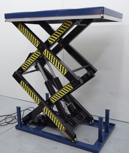 Mesa elevadora de tijera eléctrica de 3.000 Kg con altura regulable a fin de lograr una posición de trabajo cómoda en todas las situaciones, en puestos de montaje, en puestos de control, puesto de paletización, salida de máquina, etc. Controlada mediante una botonera con seta de emergencia y un bastidor de seguridad para detener el descenso en caso de encontrar un obstáculo. Movimientos suaves. Estructura de acero rectangular para asegurar la estabilidad y la resistencia de la mesa. Barra de seguridad. Motor con protección IP54. Válvula regulable. Ejes desmontables. Rodillos estabilizadores. Tensión de alimentación 380V. Marcado CE. Fabricación a medida, consúltenos.