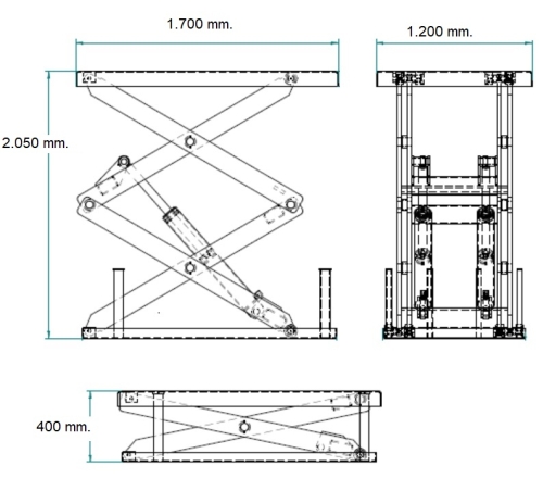 Mesa elevadora eléctrica 3.000 kg. Plataforma de 1700 x 1200