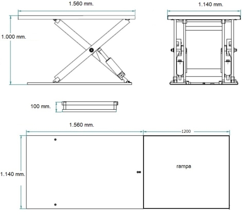 Mesa elevadora eléctrica Extraplana 2.000 kg con rampa
