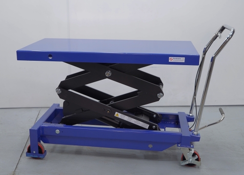 Mesa elevadora manual de tijera rodante de 800Kg que permite trabajar a una altura cómoda para realizar tareas como manipulación, traslación, reparación, embalaje, control de piezas o productos, transporte de piezas en líneas de fabricación, etc. Con ellas ahorrará tiempo y facilitará enormemente el trabajo a realizar. La elevación se realiza mediante tijera a través de pedal. Descenso seguro y continuo mediante palanca. Chasis con 2 ruedas fijas y dos giratorias de poliuretano. Ruedas orientables protegidas y con freno.