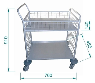 Carro de distribución fabricado en perfil y tubo de acero, superficie metálica de gran resistencia, perfecto para el transporte y almacenaje de todo tipo de artículos, capacidad máxima de 250Kg. 4 ruedas giratorias de goma gris.