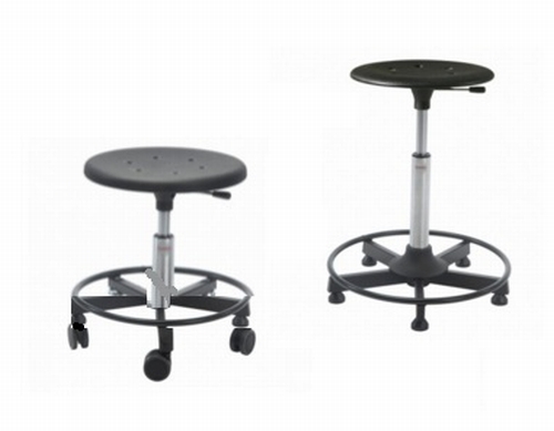 Taburetes industriales con Y sin ruedas. Base de Ø 480 y asiento de Ø 360. Altura regulable desde 540 hasta 800mm.