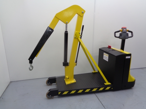 Grúa contrapesada de tracción eléctrica y elevación y extensión de brazo manual, perfecta para la elevación de cargas hasta 500 kg. Fácil de manejar, gracias a su timón direccional eléctrico. Posibilidad de posicionar el brazo de la grúa en tres posiciones distintas. Gancho forjado muy resistente y giratorio. Marcado CE.