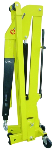 Grúa plegable de 2.000 kg, controlada mediante una bomba manual, muy manejable. Posee ruedas de nylon. Posibilidad de posicionar el brazo de la grúa en tres posiciones distintas. Gancho forjado muy resistente y giratorio. Marcado CE.