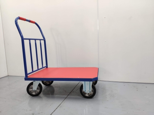 Plataforma con medidas 910x610, fabricada en Tubo y perfil de acero soldado con una capacidad máxima de carga de 500 Kg. Superficie de fibra de madera roja, dos ruedas fijas y dos giratorias de goma, que permiten una movilidad total del carro. Fabricación a medida, consúltenos.