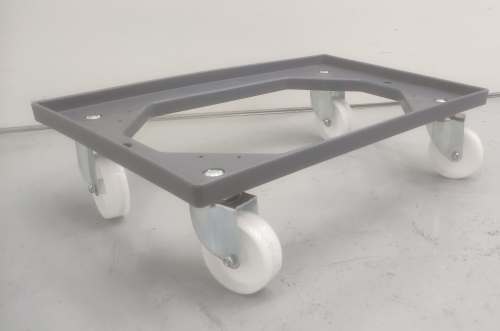 Plataforma rodante con medidas ext. 610 x 410 x 161 mm. e interior 604 x 404 x 23 mm. muy útil para el transporte de todo tipo de cargas de hasta 250Kg. Fabricada en PPC color gris con 4 ruedas giratorias de nylon.