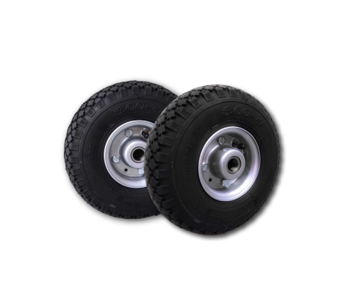 Rueda con llanta metálica, cubiertas neumáticas de color negro. 6 lonas.