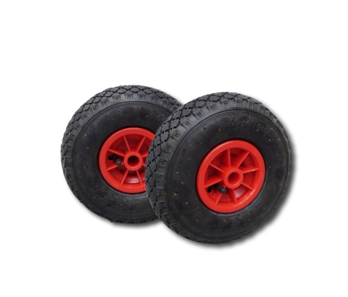 Rueda neumática con cámara de aire. Cubierta 4 lonas, llanta polipropileno.
