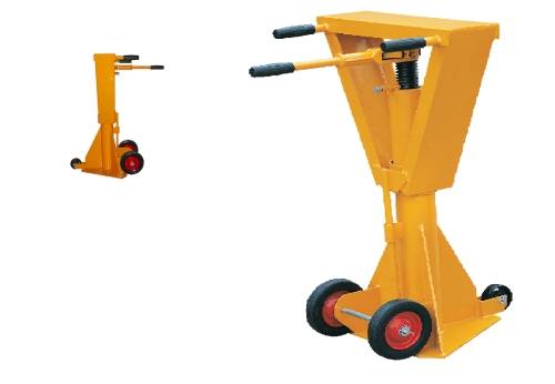 Soporte para la sujeción de remolques de hasta 45 toneladas.Con ruedas para su traslado y altura regulable.